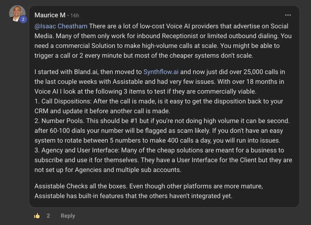 Think of the AI employee in GHL as an intern and Lead Revival as the top performing seasoned employee. Limitations around making outbound calls, outreach volume, and conversational booking are just a few of the things that make us different.