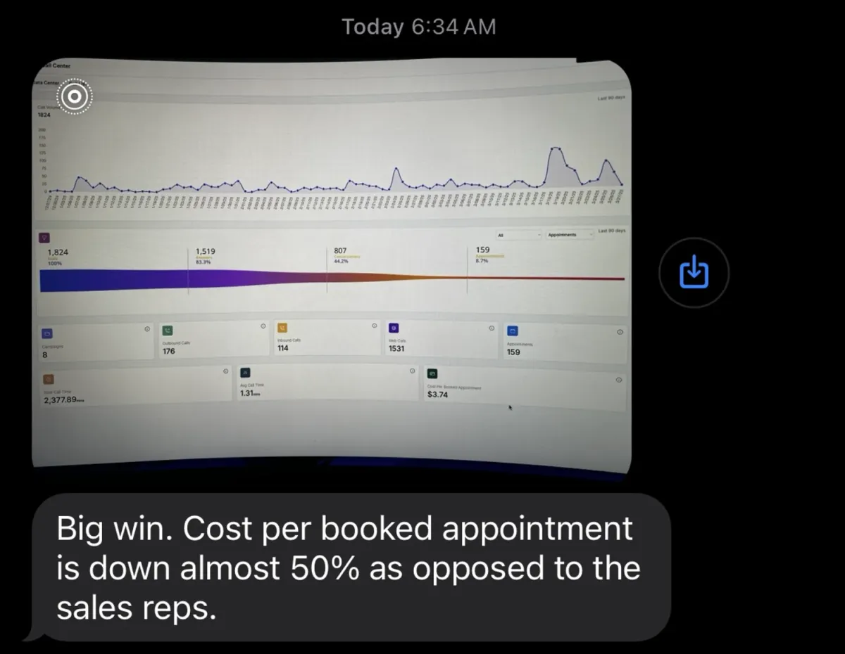 Our AI handles everything a sales rep would do - and more. It makes outbound calls, follows up with leads instantly via text and email, books appointments, answers common questions through live chat, and even creates detailed notes from every conversation.